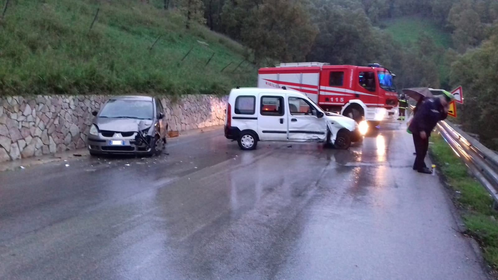 A causare il sinistro la strada scivolosa per la pioggia.