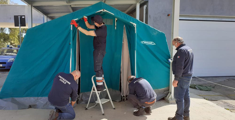 Emergenza coronavirus: tenda pre-triage montata dall’Ufficio di Protezione Civile al San Giovanni di Dio.
