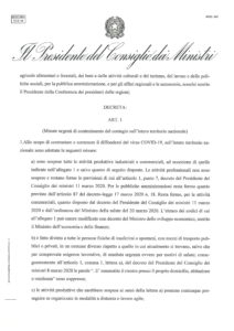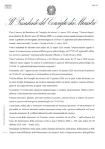 Il nuovo DPCM del 22/03/2020, si applica a tutto il territorio nazionale e stabilisce quanto segue: