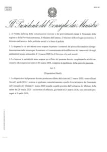 Le disposizioni del presente decreto producono effetto dalla data del 23 marzo 2020 e sono efficaci fino al 3 aprile Le stesse si applicano, cumulativamente a quelle di cui al decreto del Presidente del Consiglio dei Ministri 11 marzo 2020 nonché a quelle previste dall’ordinanza del Ministro della salute del 20 marzo 2020 i cui termini di efficacia, già fissati al 25 marzo 2020, sono entrambi pro rogati al 3 aprile 2020.