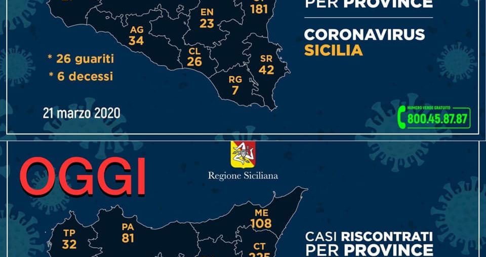 Alle 12 di giovedì 19 marzo i casi di Coronavirus in Sicilia sono 340 (58 più di ieri)